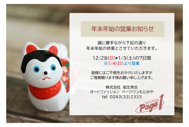 年末年始の営業時間につきましては、ご来店前にお電話にてご確認くださいますよう、何卒よろしくお願い申し上げます。